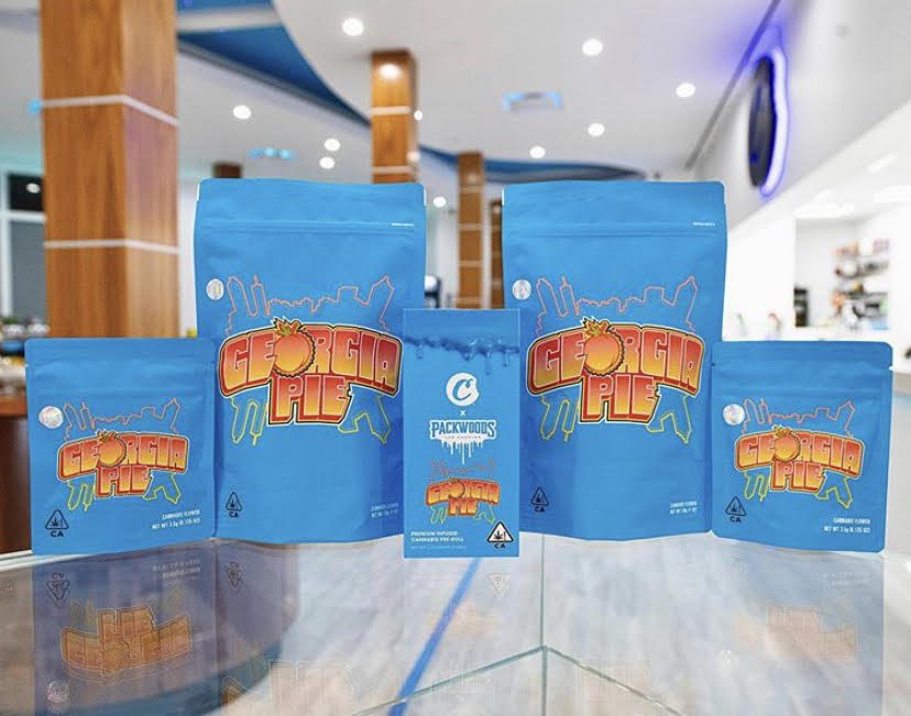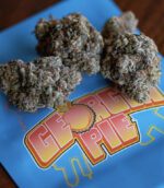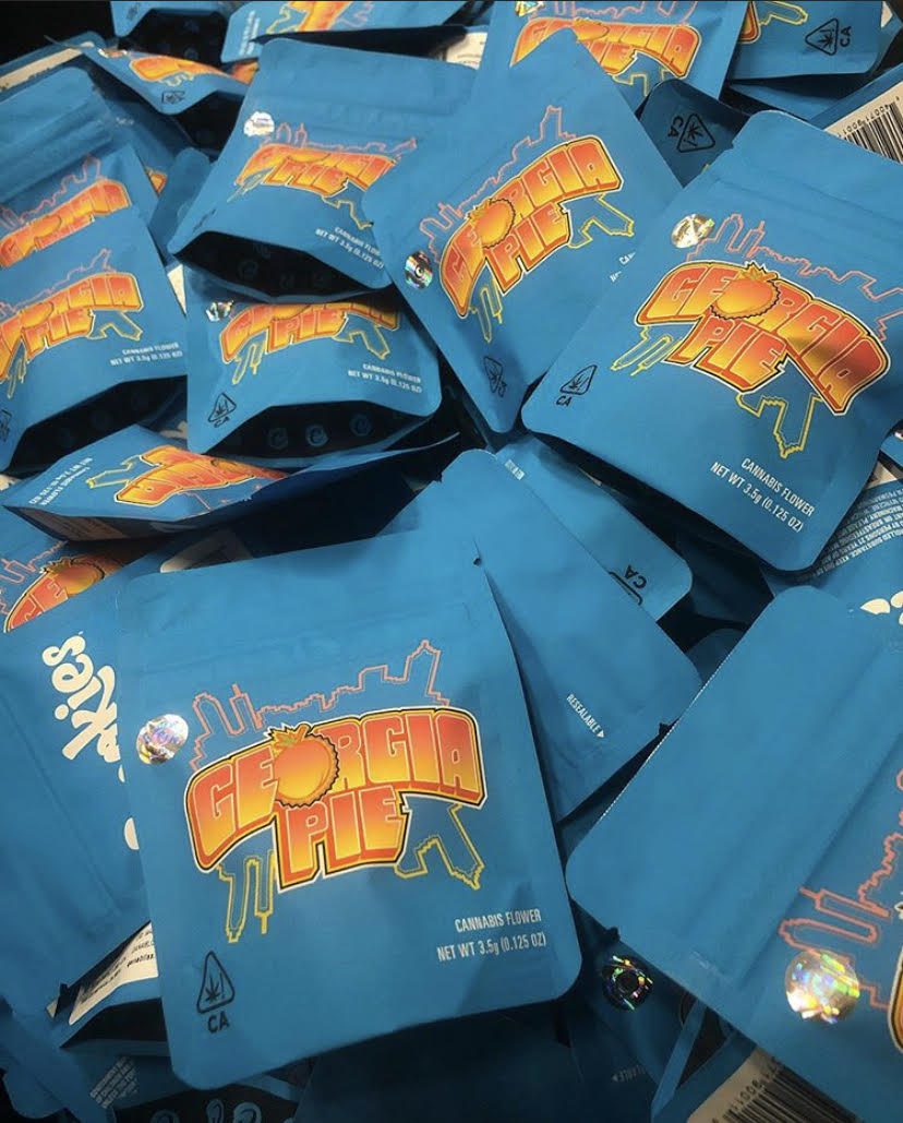 Georgia Pie strain is a slightly indica dominant hybrid strain (60% indica/40% sativa) created through crossing the infamous Gellati X Kush Mints strains. Although it’s hard to find outside of the Colorado area, Georgia Pie is a favorite among breeders and patients alike for its delicious flavor, sturdy structure and full-bodied high. This bud packs a sweet fruity berry flavor with hints of rich cherries and nutty dough. The aroma is very similar, although with hints of earthy herbs to it, too. The Georgia Pie high settles in a few minutes after your final toke, slowly working its way through your mind into a lifted state of pure happiness and euphoria that’s lightly tingly and hazy in nature. This tingly effect will soon work its way throughout the rest of your body, leaving you calm, totally at ease and pretty hungry at times. With these long-lasting effects and its super high 25-27% average THC level and 1-3% CBD level, Georgia Pie is often chosen to treat chronic stress, depression, appetite loss or nausea and insomnia. This bud has small and rounded popcorn-shaped olive green nugs with purple undertones, thin amber hairs and a coating of frosty purple-tinted white crystal trichomes.